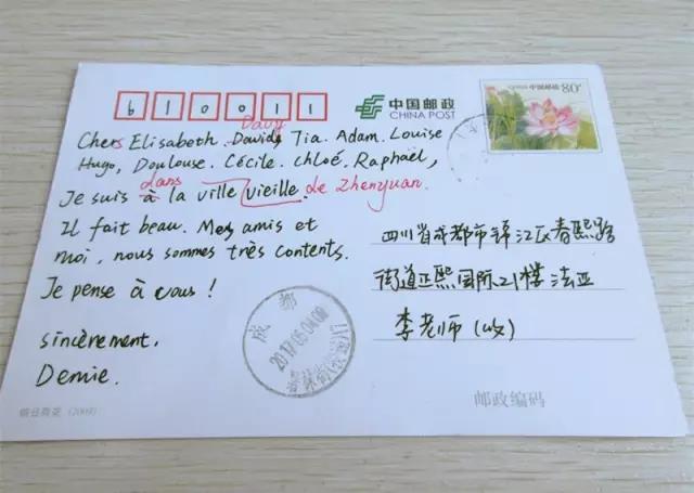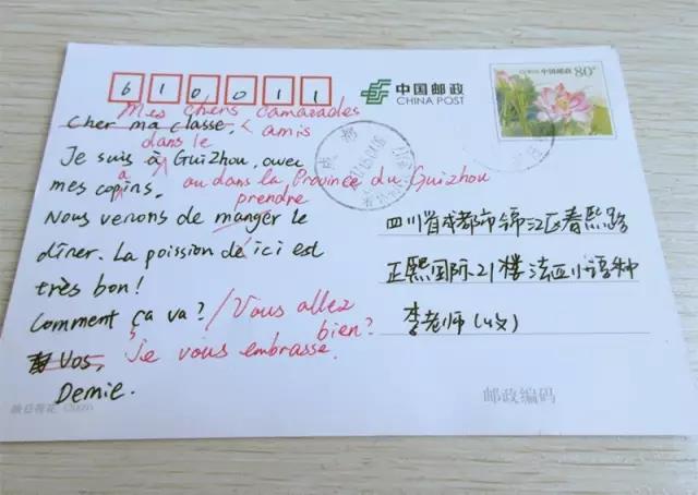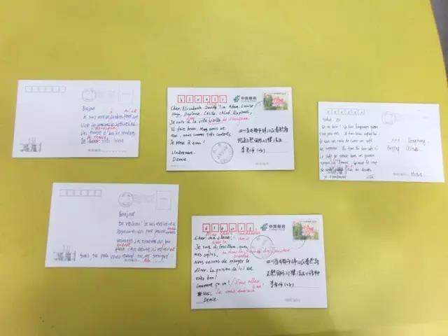 咔咔咔,对的,这个就是我们法语出国班的学生们的旅行作业~我们的李琪老师布置的旅行作业,用法语写明信片!