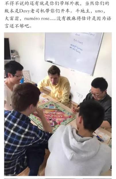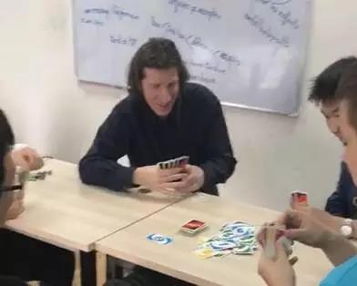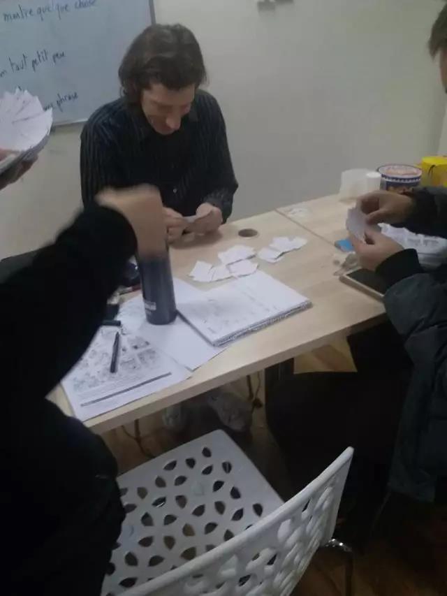 是的,他们居然拖着外教老师一起打牌,我大天朝独有的斗地主,而且是亲手制作的,可以看出他们对斗地主的钟爱了吗。我们Davy老师都被带坏了!不过据说开始两盘,几个人还是有点优势,后面老师知道玩法了几个人就赢少输多了。如果这不算欺负外教,那你们读读这个名字Nytaille(用法语读)你们就知道该心疼我们外教了。