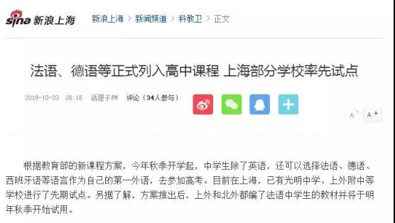 它提出的代替英语的选择现在就两种,就法语和德语。现在在拿上海的几所中学作试点,会陆陆续续把这个规模扩大。