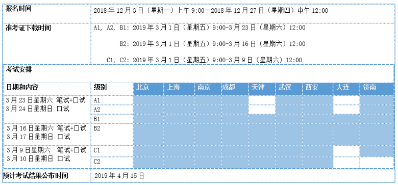 考试将在北京、上海和天津等9城市的考点举行,详见下表。