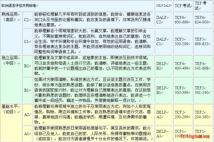 欧洲语言标准要求及与TCF,TEF的对照_【法亚法语】成都法语培训_成都法语学习_成都法语培训机构_成都法语培训班