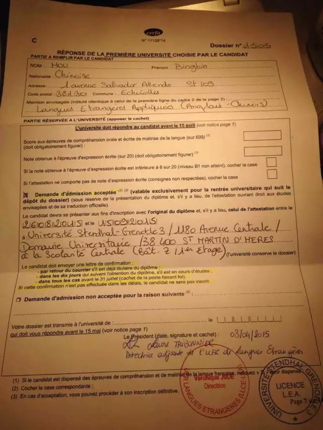 这一别都快一年了,前不久听说她被格勒诺布尔第三大学(Université Stendhal)的LEA专业录取,真的很替她高兴,相信这是一个好的开始,以后她会用自己的这份执着为我们见证不一样的奇迹。