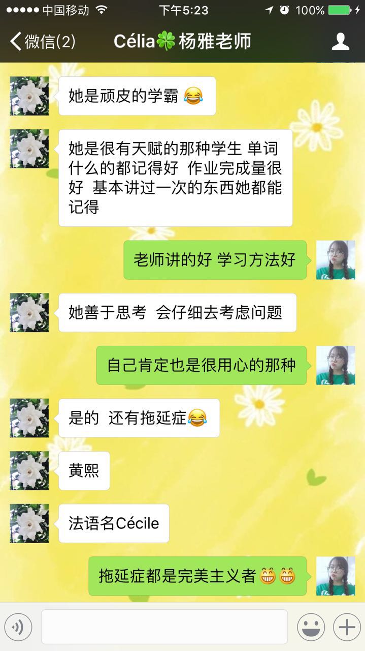 其实语言真的需要天赋,那么这个天赋要怎么来呢,除了天生,兴趣和目标也是一大来源。Cécile同学是在大四的时候开始学习法语的,目标非常明确,就是为了去法国读书,再加上她本身又对语言非常的敏感,学的就非常顺啦。