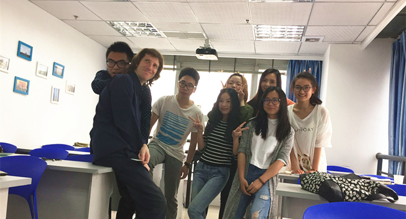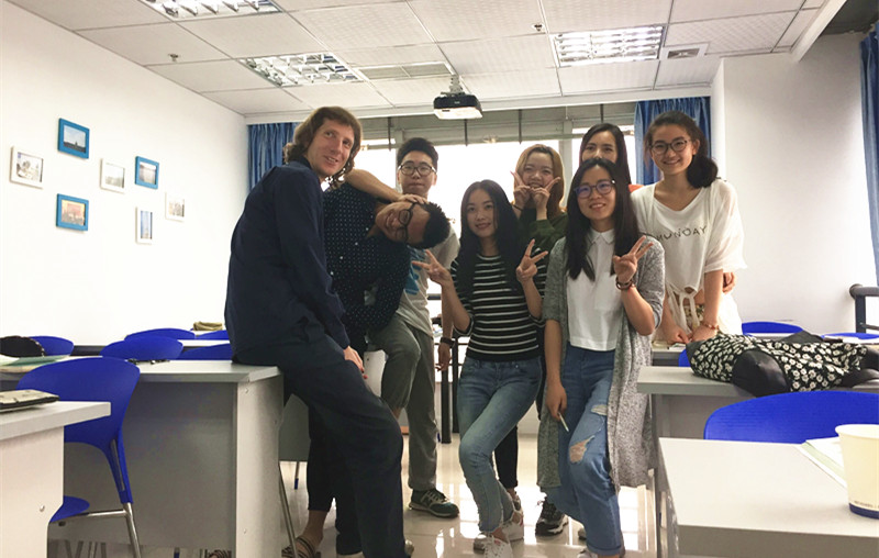 这是李琪老师所带的法语出国班,外教课的授课气氛比较自由,学生们跟外教的关系也比较亲近。