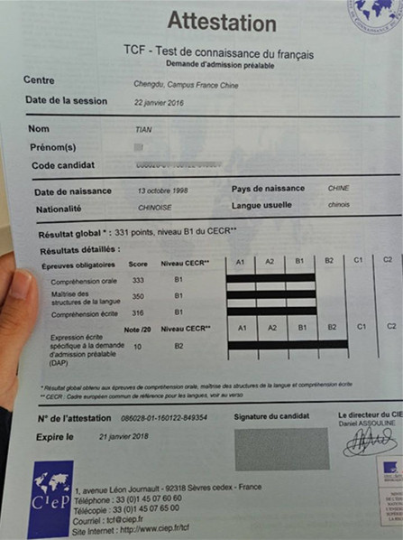 考试类型:TCF所报课程: