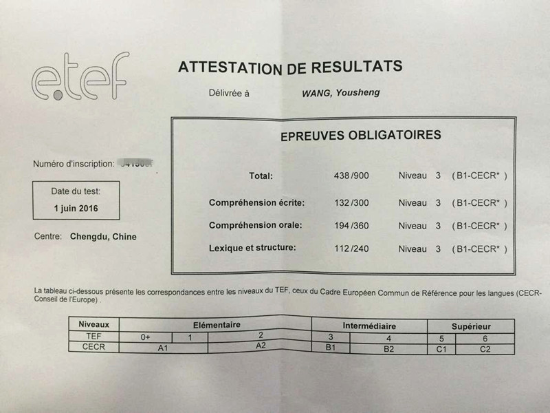 考试类型:TEF所报课程:出国班