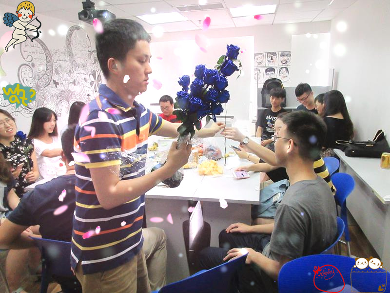 对啦,就是德语部的代老师啦~听说代老师收到了两束花耶,都是谁送的呢~是小粉丝还是暗恋对象呀~不过注定伤心啦,代老师都把花分给同学们啦~