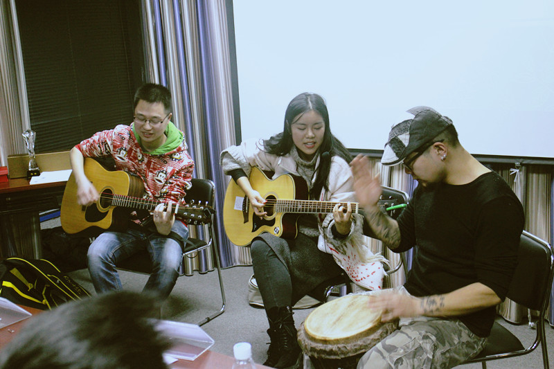 除了学生自己的小节目之外,咱们还专门邀请到了成都非常著名的乐队大浣熊乐队,他们的精彩表演也给整个比赛增加了不少气氛。