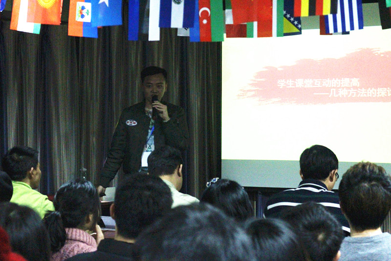 各位老师就“如何调动课堂气氛”、“参与感在课堂中的作用”等主题展开了讲演和交流。日韩组的白老师更是带来了得意门生,不仅表演了今年非常火热的《PPAP还演唱了花泽香菜的《恋爱循环》,孙老师也在大家的要求下跳起了舞蹈,俄语组的王老师用自己的霸气和幽默征服所有人的膝盖、法语组的刘爽老师用自己的热情使整个场子都欢脱起来,还有谭老师和外援赵老师现场表演的浮夸演技也是没谁了,还有韩语组的“阿污”徐老师,最近大家都想去韩语班听她讲段子呢,还有西班牙语组的楚楚老师用漫画交给大家,西班牙语真的很简答,还有意大利语组的李岚老师也条理清晰的给大家分享了她的课堂妙招,还有最先出场的德语组陈老师,一场过后也让所有人记住了几个德语流行词!