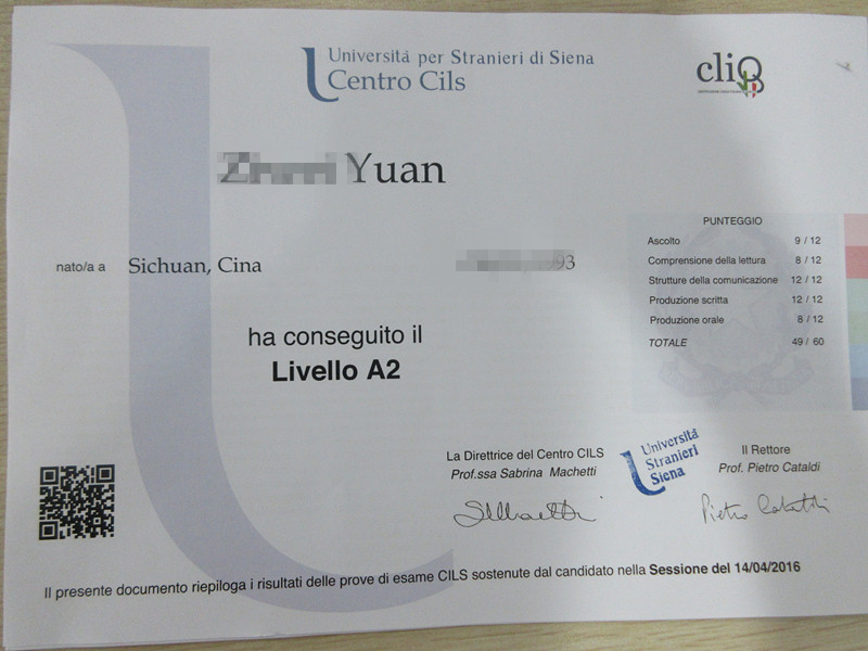 考试类型:CILS所报课程:初级班意大利语 CILS B1