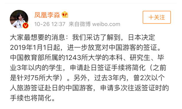 近日,一则“日本签证即将再度放宽”的新闻刷遍了微博: