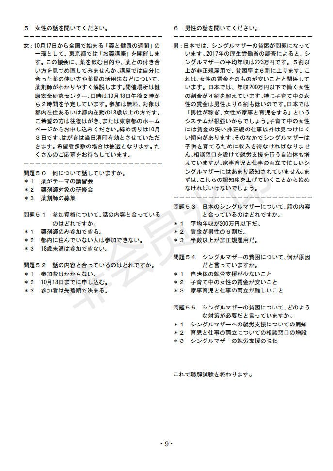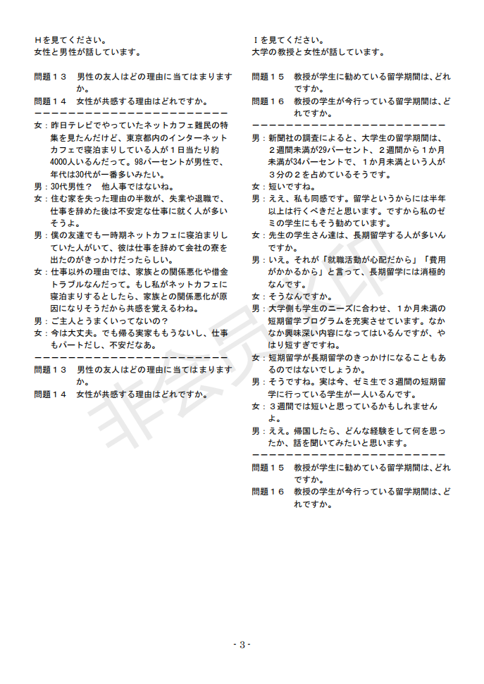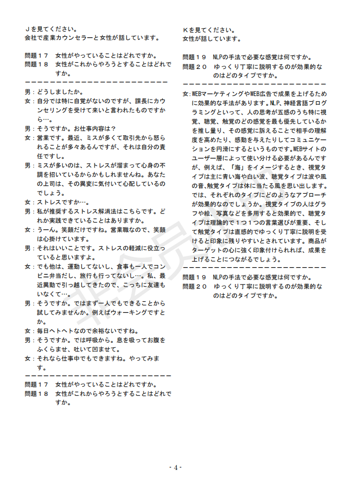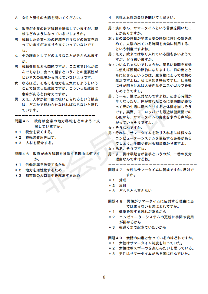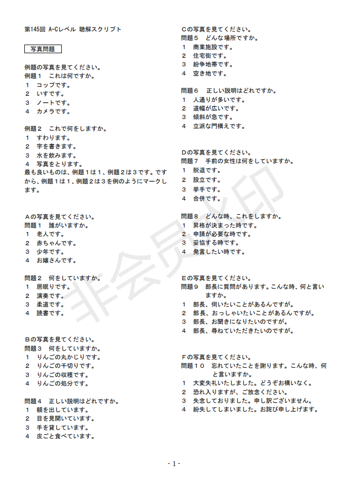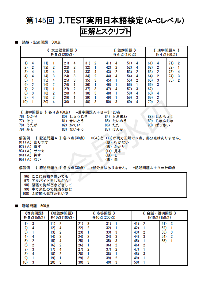 日语J.TEST第145回考试答案(A-C级)