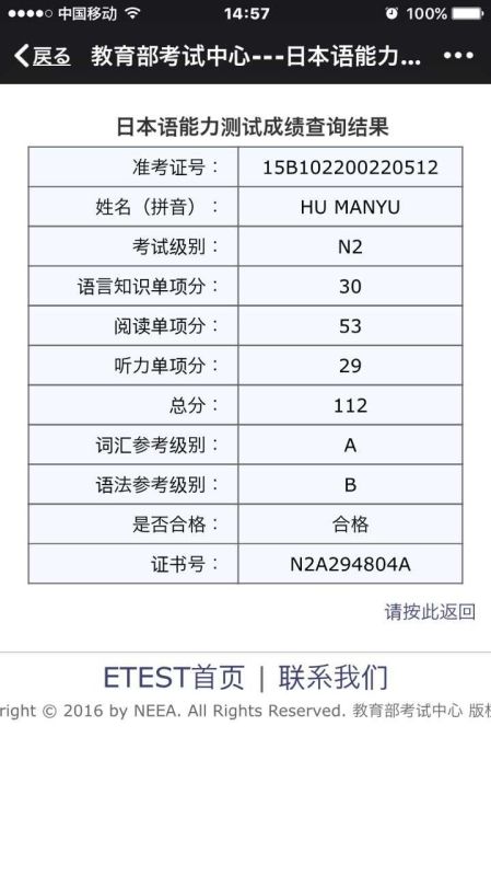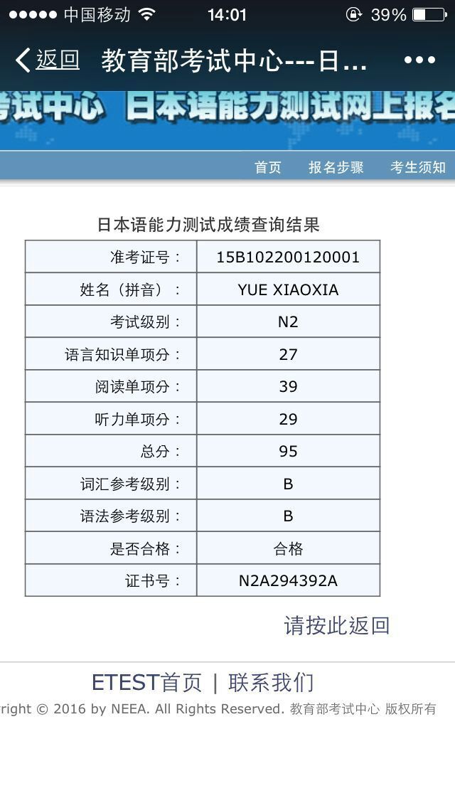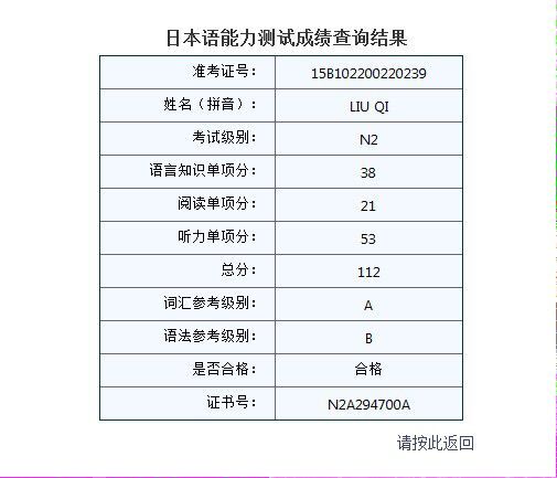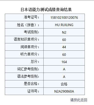 法亚日语班的小伙伴在上次的日本语能力测试中都取得了优异的成绩,下面让我们来看看小伙伴们的优异表现吧。在短短的数月学习过程中,小伙伴们就能考到N2甚至是N1的好成绩,这是非常厉害的,与我们法亚教师的悉心教导也是分不开的,再次祝贺小伙伴们,也感谢老师们的悉心付出。