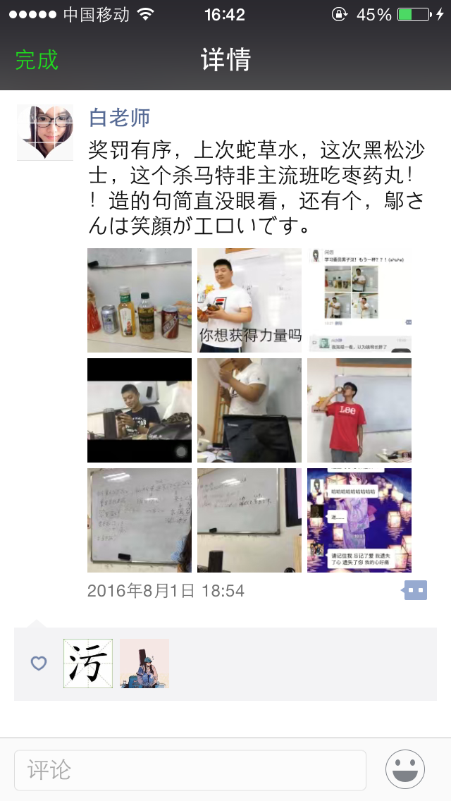 不愧是学习委员,突然想到以前我们班的脏活儿累活儿也都是推给学习委员的= =心疼学习委员一秒钟……“姚明”哥哥,你还好吗?在班上有什么问题一定要跟老师说,这种“欺凌现象”在法亚是坚决不允许的!