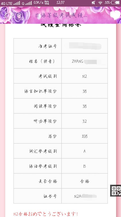 考试类型:JLPT-N2所报课程:白班成都日语学习 日语能力考试