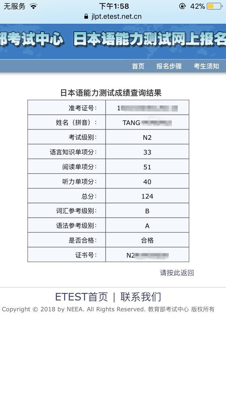考试类型:JLPT-N2所报课程:中级成都日语学习 日语能力测试