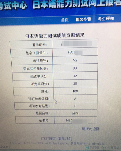 考试类型:J-test N2所报课程:出国班
