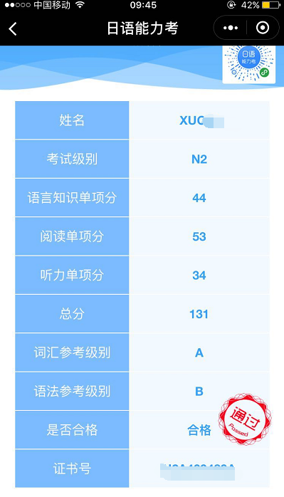 考试类型:JLPT-N2所报课程:出国班