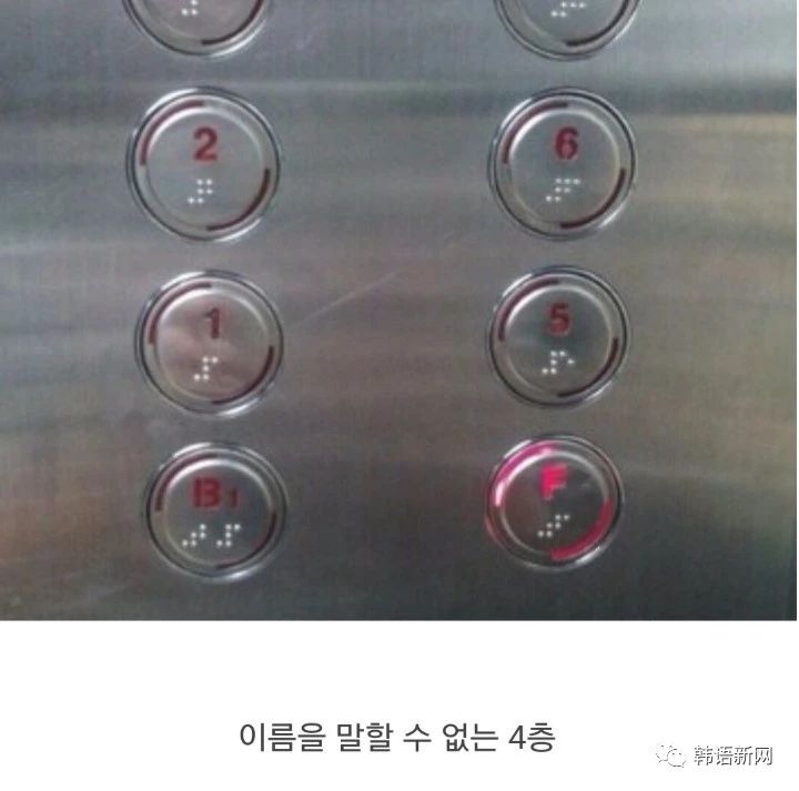 1. 数字4代表不吉利或让人联想到死亡,所以韩国电梯的4楼都会使用F来代替。