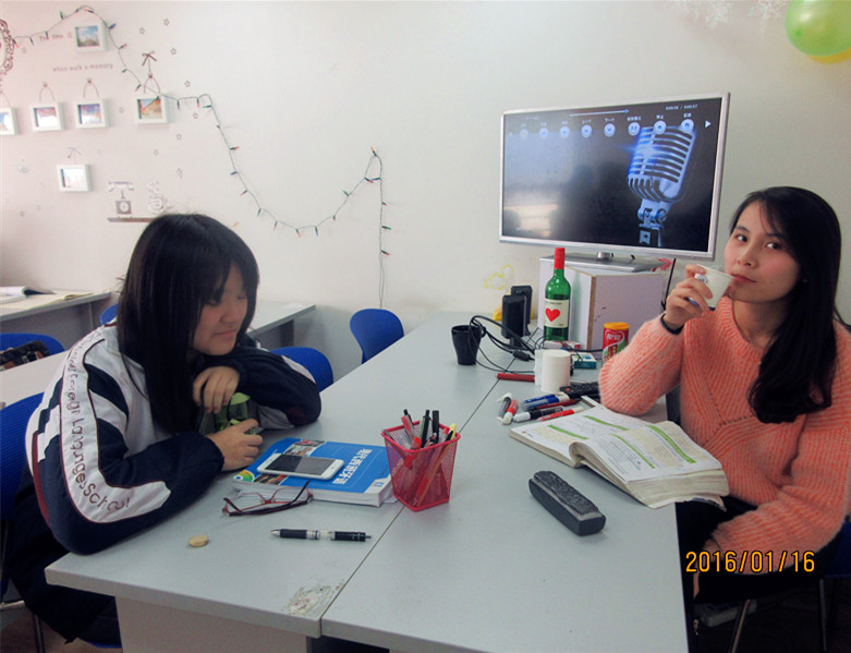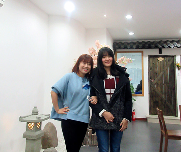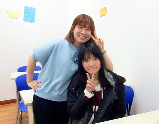 勾亚姗与法亚西班牙语老师钟老师的课间合影。