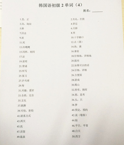 【韩语初级班】默写单词_【法亚韩语】成都韩语培训_成都韩语学习_成都韩语培训机构_成都韩语培训班