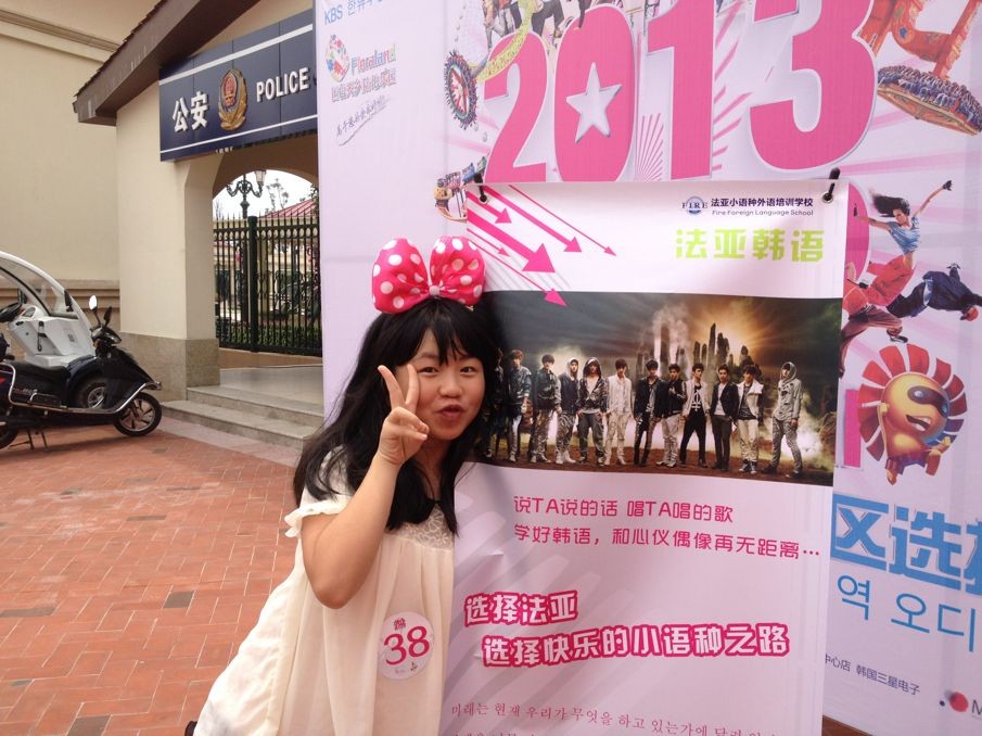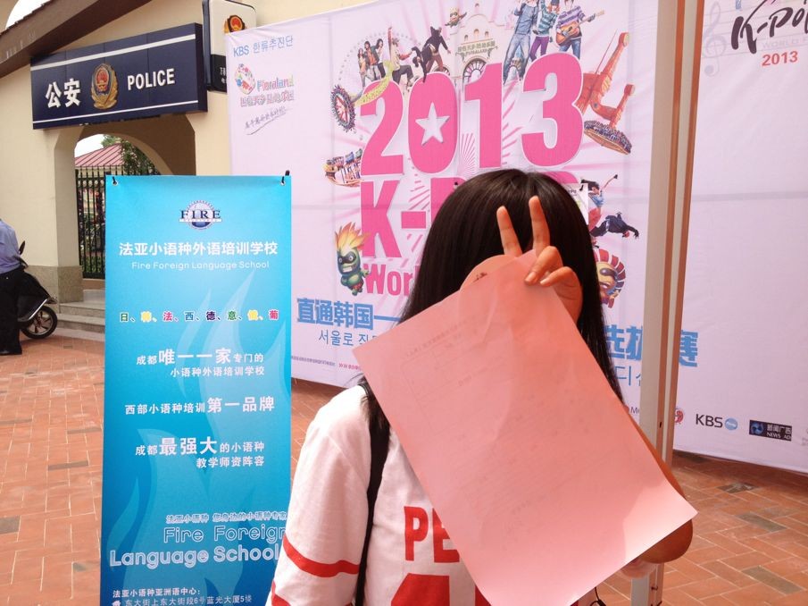 7月20日,2013 K-POP World Festival中国西南区选拔赛在成都国色天乡三期陆地乐园进行了第一轮比赛,我校韩语班学员熊悦如、邱煜等多名同学成功晋级复赛,祝她们好运