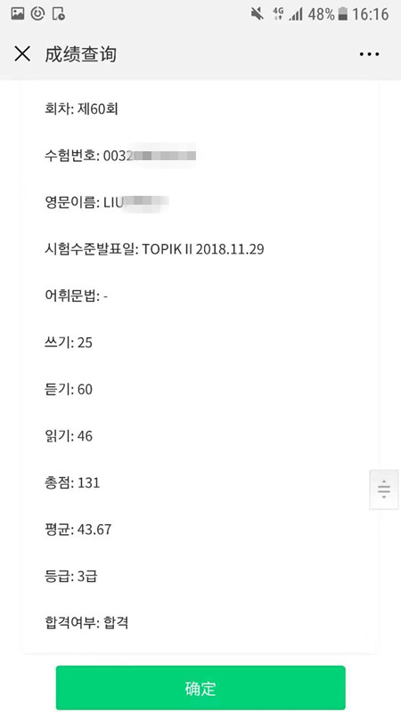 考试类型:韩语TOPIK等级考试所报课程:韩语TOPIK3级