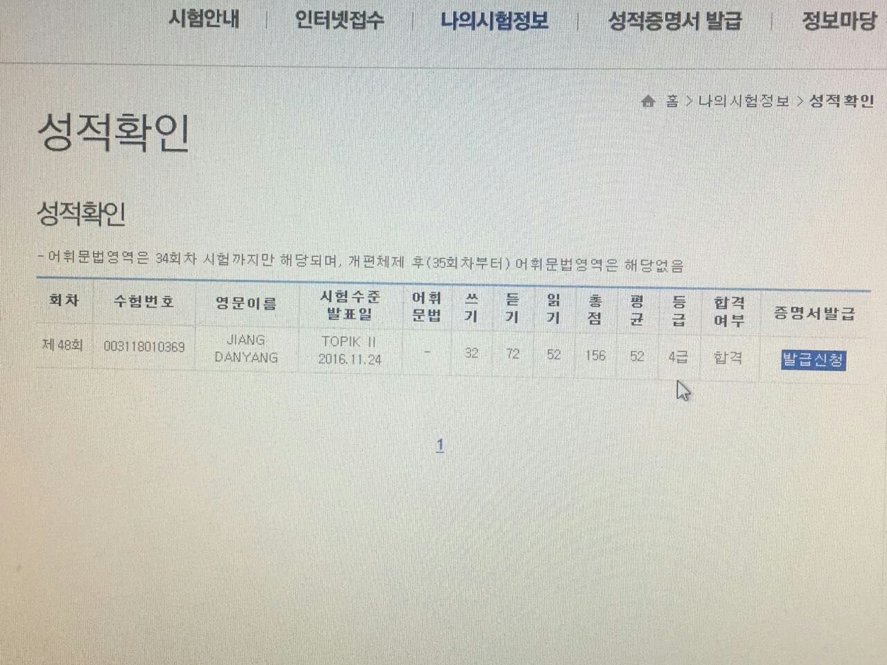 考试类型:TOPIKⅡ所报课程:中级TOPIKⅡ 156