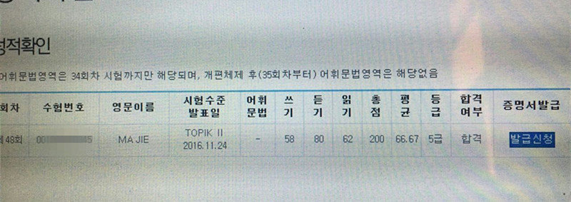 考试类型:TOPIKⅡ所报课程:中级2
