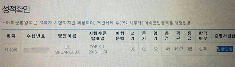 考试类型:TOPIKⅡ所报课程:初级2