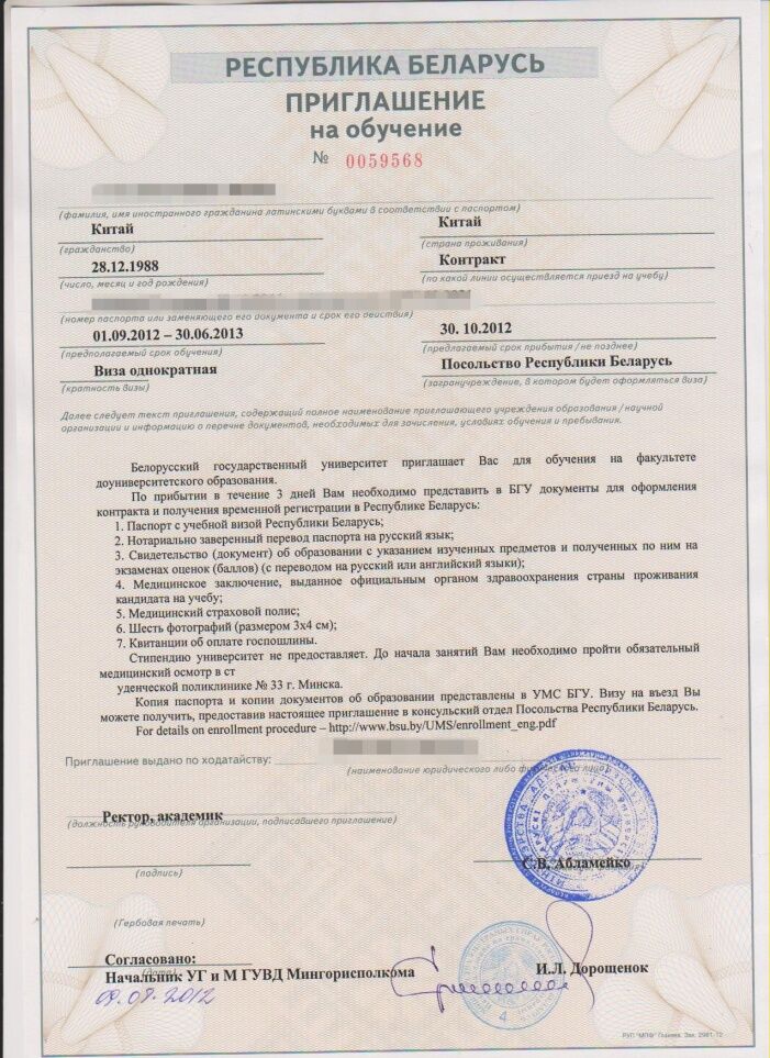 闫同学获得俄罗斯高校录取通知书