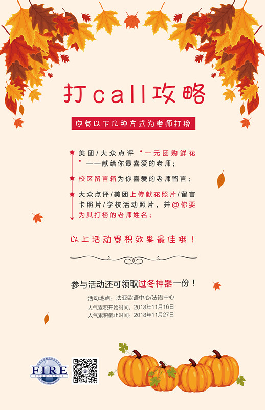 感恩节一元献花礼正式启动!快来为你喜爱的老师打call!_成都泰语培训_成都阿拉伯语培训_成都越南语培训